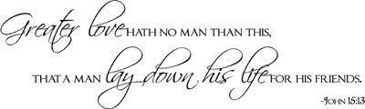 / Greater Love Hath No Man : "Greater love hath no man than this: that he lay down his ... - Check spelling or type a new query.